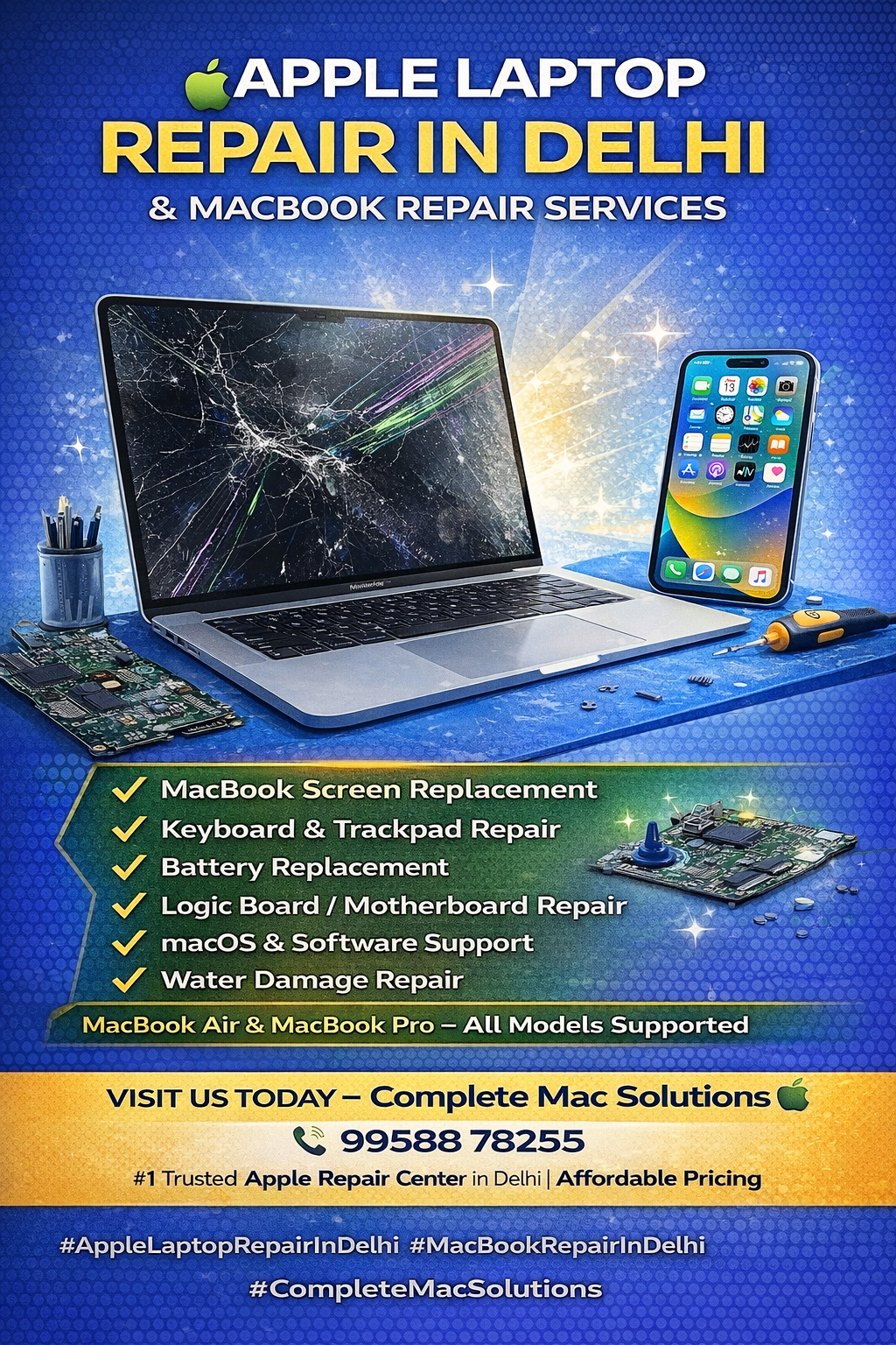 CompleteMacSolutions.com is one of the most trusted names for MacBook repair in Delhi NCR, known for transparent service, genuine parts, and expert technicians. We ensure your MacBook is repaired with precision, care, and complete data safety.